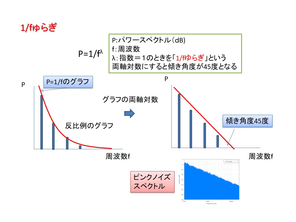 ここで、λ=1のときが「1/fゆらぎ」と呼ばれます。