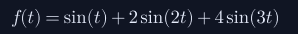 この式は、1Hz、2Hz、3Hzの波がそれぞれ振幅1、2、4で混ざっていることを意味します。