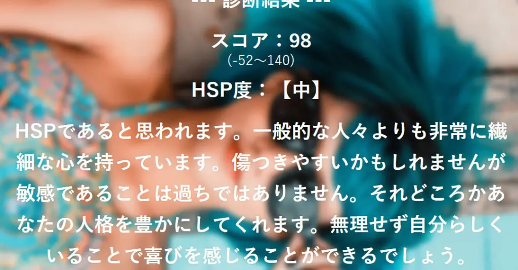質問のうち、12個以上に「はい」と答えた人は、おそらくHSPでしょう。しかし、どんな心理テストよりも、実際の生活の中で感じていることのほうが確かです。たとえ、「はい」が1つか2つしかなくても、その度合いが極端に強ければあなたはHSPかもしれません。